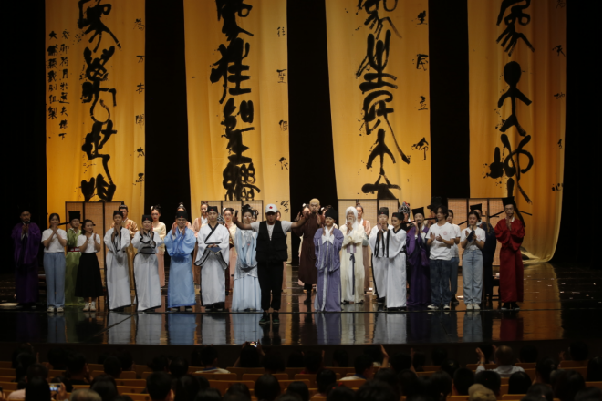 剧目的结尾,贯穿始终的“时间之光”逐渐熄灭,生命的帷幕缓缓落下,而传颂千载的“横渠四句”响彻礼堂,大儒张载心怀天下的崇高品格、恢弘阔大的思想气度、青出于蓝的创新精神和力挽狂澜的使命意义至此完美展现。