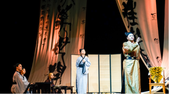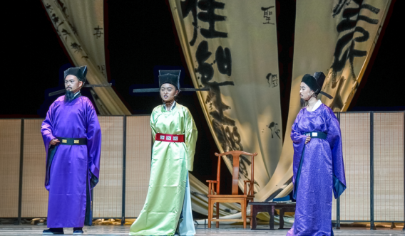 儒家素来学而优则仕,而后张载步入政治时代,第三幕《文德殿神宗问对治道政事堂群臣亢言新政》以文德殿与政事堂两厢场景,三轮回合,分别呈现面神宗谈治道之要、会王安石辩祖宗之法,离神宗确立国是的历史场景。此幕背景宏大,神宗一朝众士大夫纵有秩序重建之志,却难得君行道之机,而张载面临此番情景,选择退守横渠,修辞立诚,也由此奠定了他在中国思想史上开宗立派的历史地位。