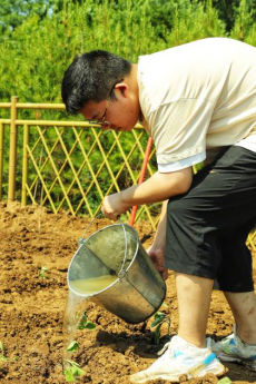 老师们也撸起袖子,卷起裤脚,在专业人士一番悉心的指导后,同学们渐入佳境,干得火热。耕作的热情相互感染,带动起全体同学。随后大家经过一番讨论,精选了辣椒、茄子、西红柿等蔬菜种子,在翻垄、下播、浇水中体验自然土地上“耕”的魅力,感受到触摸土地的乐趣!