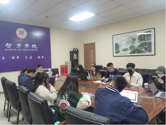 刘梓聪同学以大电音寺为切入点,从多角度阐述了赛博空间中的流行音乐与佛教文化,结合了当下互联网+的时代背景,角度非常新颖。何宛蓉同学在广泛阅读文豪苏轼的诗文作品的基础上,深入探索了苏轼诗文中的禅意,并且把这种禅意和当时的社会思潮结合起来,旧题新论。张笑溪同学的论文见微知著,从地狱观念的传入入手,尝试论述中土生死观念演变这一广大的命题,在传递知识的同时蕴含着哲思。景梓薇同学的论文同样与宗教相关,她聚焦于性别文化视域,并考证了漫长的宗教历史,探讨佛教中释迦摩尼佛的诞生。潘芷茵同学的论文同样受到了书院耕读活动的影响,她在劳动中收获了哲理性的思考,用活跃的思维发掘农禅传统中的劳动哲学。艾俊澎同学放眼将来,由价值中立的视角出发,对于未来人类的伦理价值进行了具有辩证色彩的思考。杨家硕同学的论文跳脱出传统思维,超越原本的中立思想,试图在科技与价值之间建立联系。汤祥同学将目光聚焦于镜像这一概念,论述了它作为废墟的建筑与作为阴影的价值。何雯文同学关注当下的前沿科技,并以马克思主义劳动价值论作为指导,分析了NFT广泛的发展前景。王恺同学在对《资本论》这一著作的深入研究和论证分析的基础上,对于科学背后的哲学前提进行了严密证实。赵一正、马梓萌同学采用了合作写作的形式,共同完成了对国内跨越卡夫丁峡谷研究的回顾、反思与展望。两位老师对同学们的作品进行了逐一点评,常永强老师指出,本科生同学在论文写作中其实具有研究生乃至于博士生不具备的优势,那就是更加新颖的视野以及对于当下社会更为敏锐的感知,令他欣慰的是,他在许多同学的作品中都看到了这一点。张海满老师也表示,同学们的学术研究前景一片大好,虽然现在大家的习作还十分稚嫩,在各类比赛中也不具备极强的竞争优势,但是论文写作的关键就在于反复修改,他认为在场的每一篇文章都具有成为一篇优秀论文的潜质。