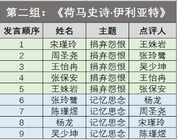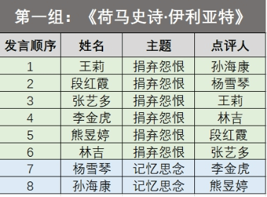 经过前期充分准备,2020年春季学期《审美与人生》课程的“古希腊智慧”系列讨论课于教学第七周陆续拉开帷幕。4月6日与4月10日晚19:3022:00在微信讨论群分别举行了第一、二组讨论课。本周讨论课主题为“《荷马史诗·伊利亚特》中的哲学智慧”,围绕“缪斯的记忆与思念”及“阿基琉斯的捐弃怨恨”两大问题展开讨论交流。两组共有来自不同院系专业的十七名同学参与,课程助教敖安娜担任主持人。