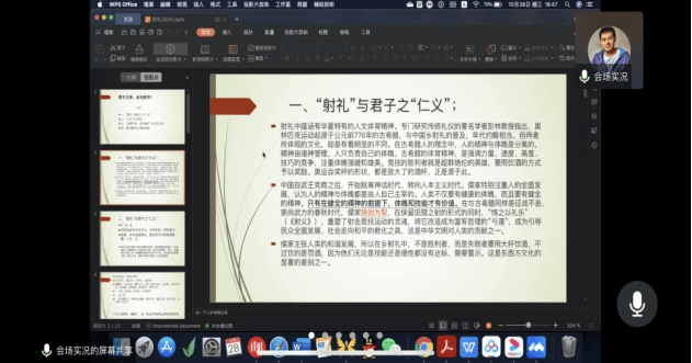 第三部分关注于孔、孟对“射礼”的改造,通过分享“后羿与逢蒙”、“子濯孺子与庾公之斯”的故事,王老师带领大家进一步思考“艺”与“礼”的关系。就“‘发而不中,反求诸己’与心性之学”的关联展开讨论。着重诠释了孟子关于“射礼之外在之行与内在之德合一”的观点:“仁者如射,射者正己而后发,发而不中,不怨胜己者,反求诸己而已矣”、“行有不德者,皆反求诸己,其身正而天下归之。”