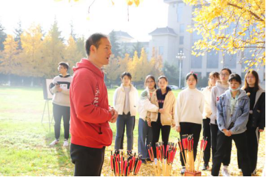 礼毕,黄教授就射箭技巧进行讲解并及指导同学们练习