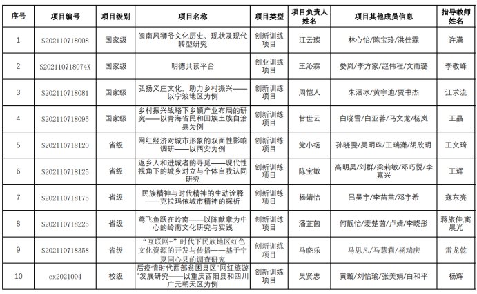 足球财富 在本次立项中取得佳绩,共有10个团队获批立项,其中国家级4个,省级5个,校级1个。具体名单见下表: