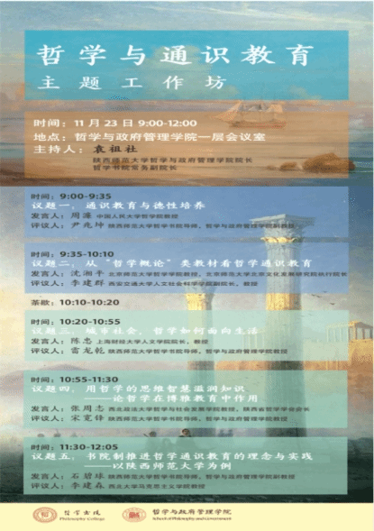 主题工作坊,开展高端对谈。书院工作坊,选取不同主题,聚集名家,探讨哲学话题,推动通识教育。2019年先后举办了两期,一期是哲学与通识教育主题工作坊,一期是现象学与主体性主题工作坊。本年度将举办哲学教育与书院教育主题工作坊。