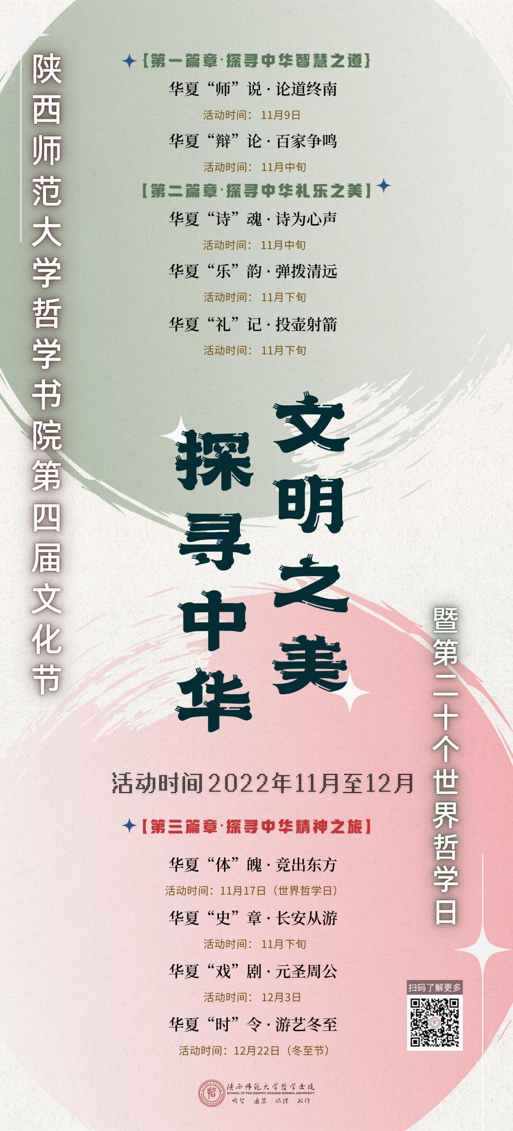旨在通过文化节系列活动,引领新一代青年学子立足传统文化,讲好哲学故事,延续历史文脉,坚定文化自信,把艺术创造力和中华文化价值融合起来,把中华文明精神和当代文化追求结合起来,充分激发中华文化生命力。