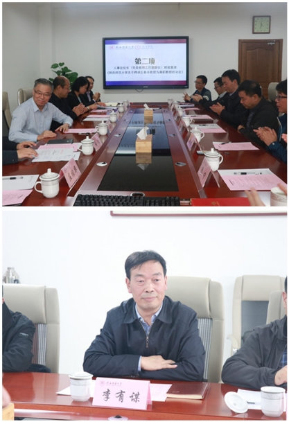 驻院教授仪式在长安校区校务楼304室举行。副校长李磊,人事处处长(党委教师工作部部长)胡波,国有资产管理处处长、人事处(党委教师工作部)副处长(副部长)樊婧,哲学与政府管理学院党政班子成员,足球财富