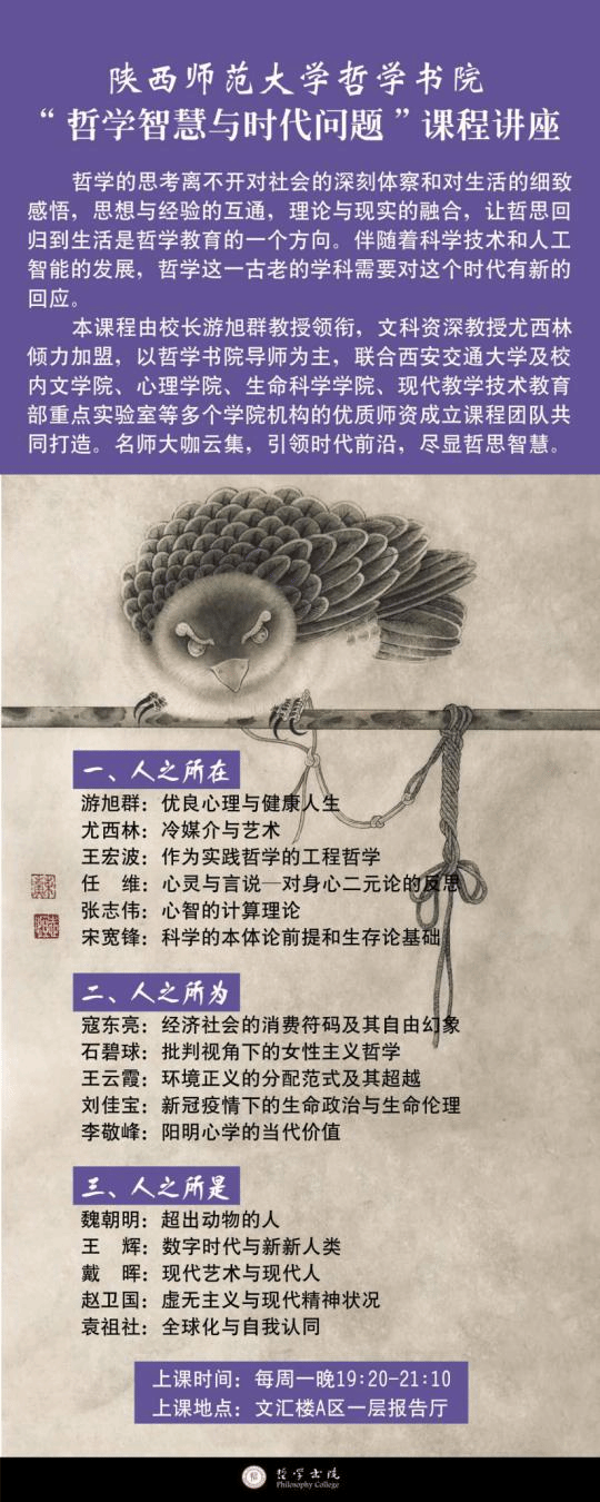通识教育课程“哲学智慧与时代问题”在文汇楼A区一层报告厅正式开讲。开篇第一讲由陕西师范大学文科资深教授、博士生导师尤西林开启。尤教授本讲的主题为“冷媒介与艺术”,讲座由哲学与政府管理学院院长袁祖社教授主持。近百名师生提前很早就赶到了讲座现场,整个报告厅座无虚席。此外还有百余名观众通过“腾讯会议”观看了讲座直播。