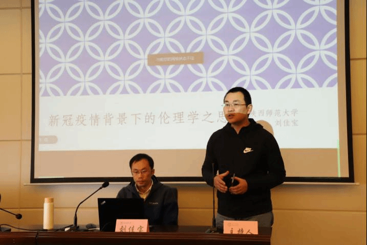 专业导师、古希腊文化研习社指导老师刘佳宝老师带来的“新冠疫情背景下的伦理学之思”,讲座由王辉老师主持,并通过“腾讯会议”全程直播,百余名师生共同聆听。