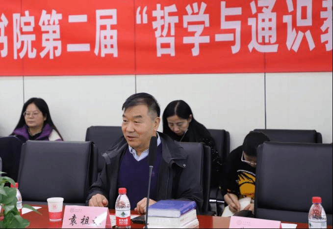 清华大学资深教授黄裕生作了题为《哲学与哲学经典》的报告,他指出将哲学作为通识教育,首先就要回答哲学是什么的问题,通过追溯本源,从哲学的产生来理解哲学。他认为作为通识教育的哲学,一是要培养学生真正的概念思维;二是它的超科学的内容,引导学生从在场的世界过渡到不在场的世界;三是让学生摆脱肤浅,实现人的解放与自由,达到精神与思想的新高度。他强调阅读哲学经典的重要性,哲学经典是它所处时代思想的精华,因此进入经典也就进入了人类历史不同时期的高度,自己的生命也会因此得到升华。赵卫国教授就哲学的概念体系、逻辑推理、思维方式等与黄教授进行了交流。
