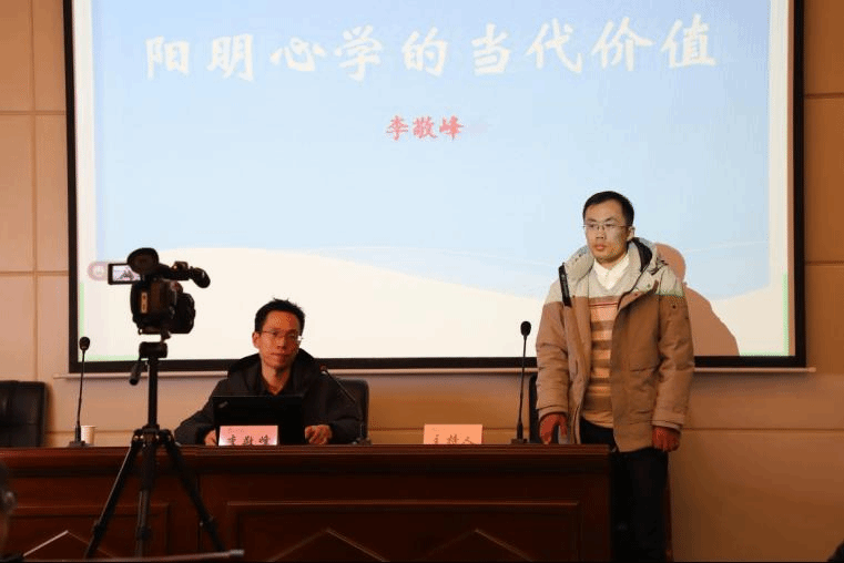11月30日晚19:20,“哲学智慧与时代问题”第十二讲于文汇楼A段一层报告厅开讲。本次讲座是由陕西师范大学哲学与政府管理学院副教授李敬峰带来的“阳明心学的当代价值”,讲座由刘佳宝老师主持,并通过“腾讯会议”全程直播,线上和线下共有近百名听众参与了本次讲座。