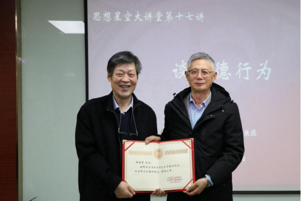 在讨论交流环节,杨国荣教授就“道德直觉和新儒家良知呈现的异同”、“为他人负责和中国哲学中的仁爱、克己之间的关系“、“是否可以用孟子的性善论代替道德行为中的仁爱和克己”、“人的有限性和超越性”、“道德源于理性还是情感”等问题,做出了详细的解答。讲座在大家的热烈掌声中圆满结束。