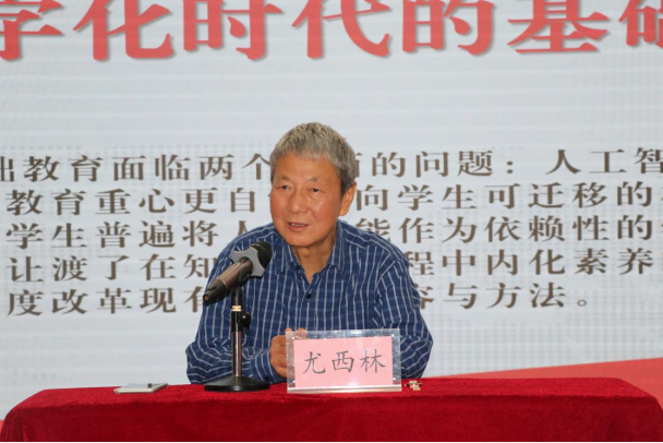 仪式结束之后,陕西师范大学资深教授尤西林为基地做了首场报告——数字时代的基础教育,报告由师大附中副校长高丽文主持。