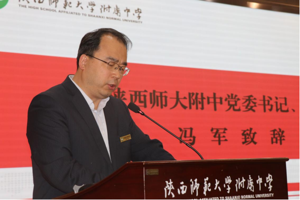 全体工作人员,陕西师范大学附属中学党委书记、校长冯军、党委常务副书记董喜林、副校长郭胜及其他领导出席仪式,师大附中教育联合体成员、附中的教师代表以及高一、高二年级师生代表共计三百余人参加了此次活动。签约暨揭牌仪式由陕西师范大学附属中学副校长高丽文主持。