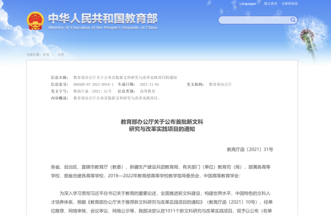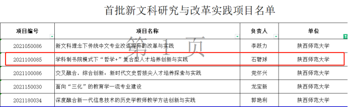 教育部办公厅日前印发《关于公布首批新文科研究与改革实践项目的通知》,公布了首批新文科研究与改革实践项目,共认定1011个新文科研究与改革实践项目,陕西师范大学5个项目名列其中,足球财富app