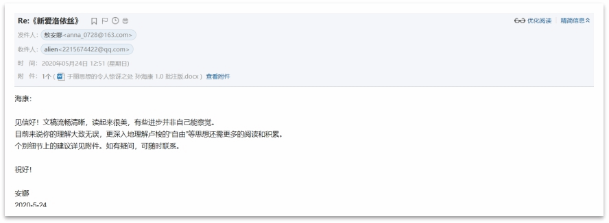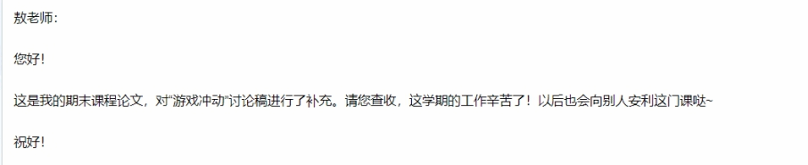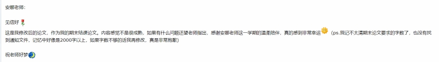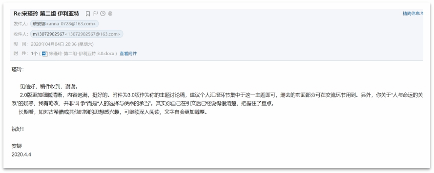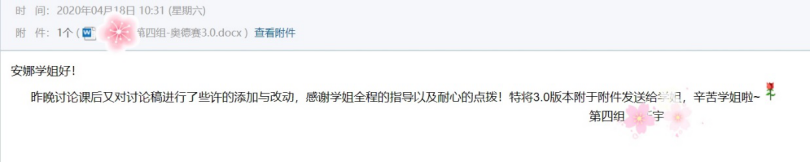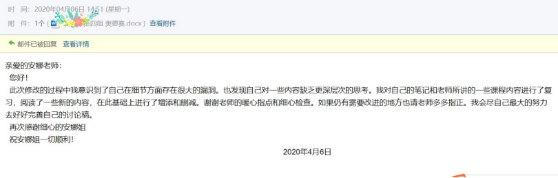 最后,全程利用邮件与同学们进行交流是更为正式和有效的沟通方式,也便于后期查询及反馈。