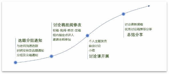 讨论课分为个人主题发言、自由讨论和小结感言三个环节。