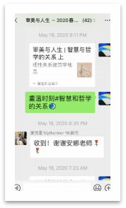 鉴于视频课件录制后不便修改的情况,遂整理并每周推出部分前期课程音频图文版推文,让同学们得以反刍课程,温故而知新;同时,也在课程群不定期分享课程内容相关图文;在老师的支持下,后半期不仅加快原有录播课进度,增设直播课与同学们及时互动,在组织第二期讨论课时,也适量缩小小组规模,增多讨论课次数,尽可能增加师生与生生间的学习交流机会。