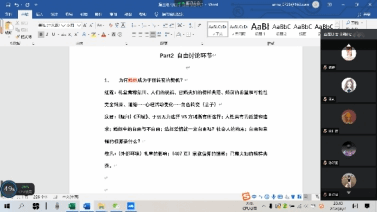 其次,在作为重头戏的自由讨论环节,助教及时做好问题及发言记录,把控现场节奏,讨论过于发散时适时聚焦主题。如遇到冷场的情况,及时向同学们提问或适当分享自己的看法,让讨论再次活跃起来。